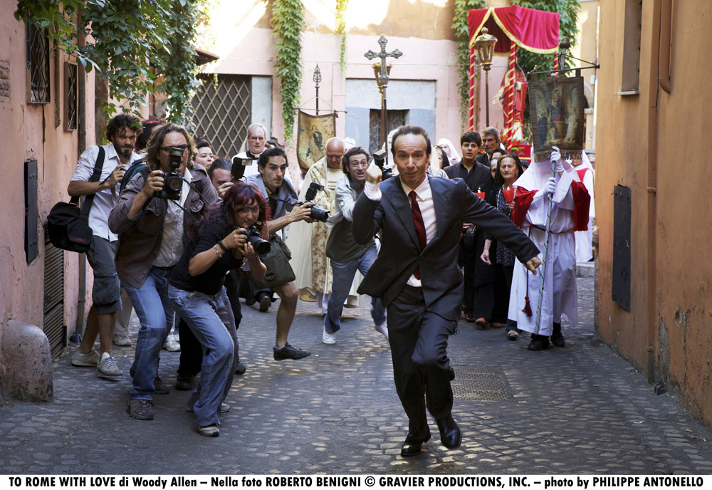 Riccardo Scamarcio is credited as playing “il ladro”, the thief at the hotel in Woody Allen’s To Rome With Love, but I can’t find a single picture of him to prove it. As a matter of fact, Roberto Benigni is the only one with lots of photos so far. (Penelope Cruz is in the Italian parts of the movie, but she’s not Italian – she doesn’t count).