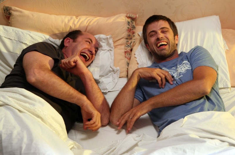 Questione di Cuore (2009) is funny, but it’s not the wacky slapstick that the picture with actors Antonio Albanese and Kim Rossi Stuart surfing on the hood of a car suggests. It begins with screenwriter Alberto, played by Albanese, rushing himself to the hospital after an apparently mild a heart attack. He has a hard time getting the staff’s attention and laments that “Only in Rome do you stand in line for a heart attack”. While he’s waiting, they’re wheeling in a more serious heart attack victim, Angelo, an auto body man played by Kim Rossi Stuart.