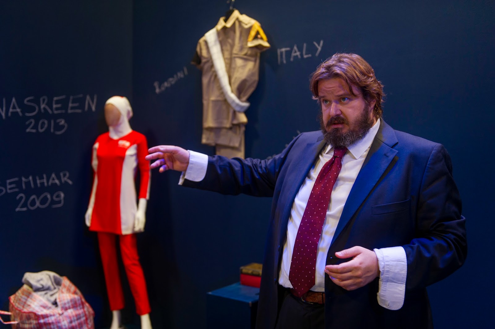 Battiston’s voice accompanies the story of three women Gladys, Nasreen and Semhar, telling their difficult story of their journey to the Italian coast and their lives today. As the women speak, Battiston’s empty room starts filling up with objects and symbols of their stories, and in the end, he’s surrounded by the signs, the words, the maps, and the memories of his new conciousness.